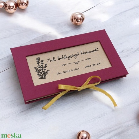 Pénzen kívül bármilyen ajándékkártyát vagy vásárlási utalványt átadhatsz ebben a gyönyörű tartóban. Ajándékozhatsz benne színház- vagy koncertjegyet, vagy saját magad által kreált közös programra szóló invitálást. A lehetőségeknek csak a képzeleted szab határt, illetve belső tartó fül mérete, ahova max. 17x9,5cm-es “kártyát” tudsz betenni :)