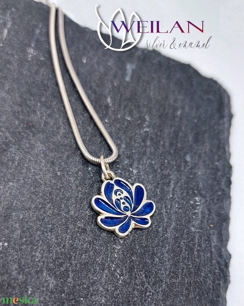 Tradició - Matyó - Rózsa ezüst tűzzománc medál, kicsi, sötétkék
