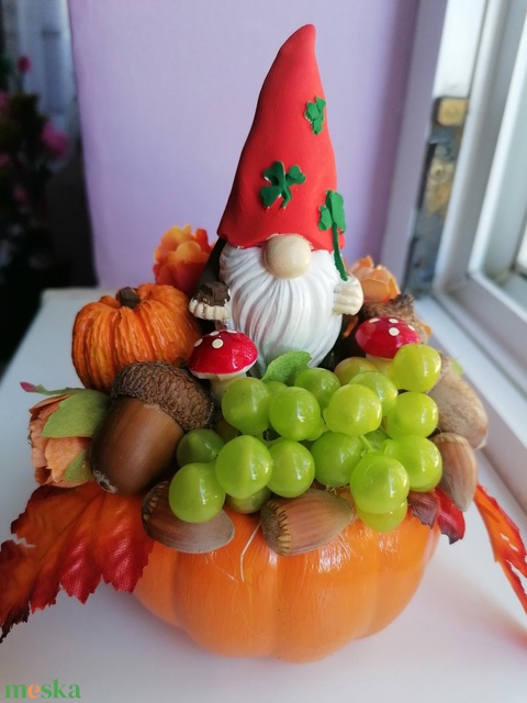 Őszi dísz tök kaspóban manóval