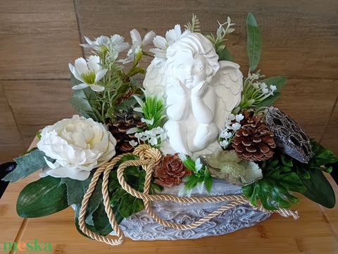 Könyöklő angyalos kőtál