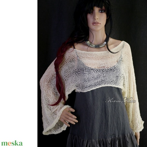 "ETA"PONCSÓ-PULCSI - bohó grunge kézzel kötött mohair csipke pulóver / krém
