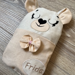 - Anyaga: első fele: puha plüss, hátsó fele: pöttyös minky, töltete: töltőflíz