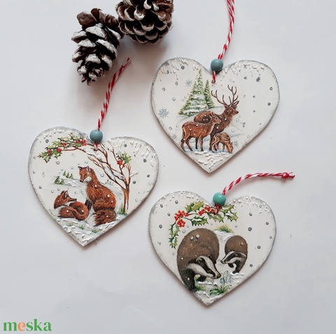 Tél az erdőn - karácsonyi szívecskék, 1 csomag