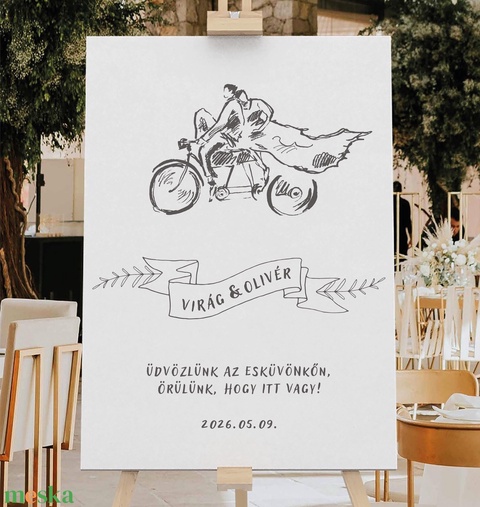 Boho grafikája miatt, biztosan illeni fog bármilyen esküvői dekorációhoz ez a köszöntő tábla, mely egyedi kiegészítője lehet a Nagy Napnak.