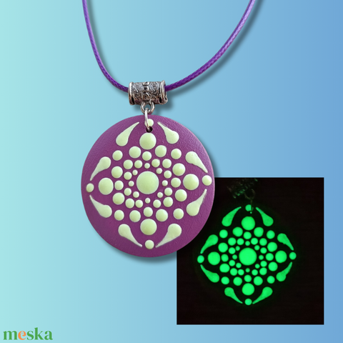 Foszforeszkáló mandalás nyaklánc - mályva