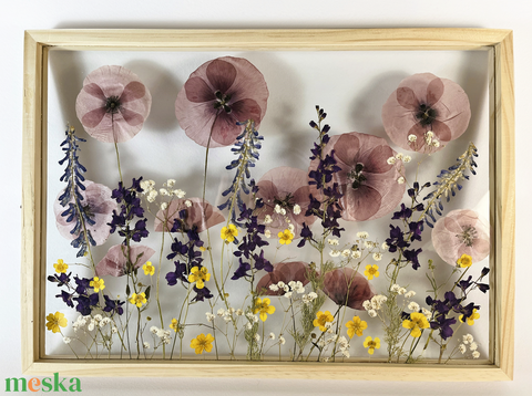 Pipacs és mezei virágok NAGY MÉRETŰ natúr fa keretben 30 x 42 x 2.3 cm