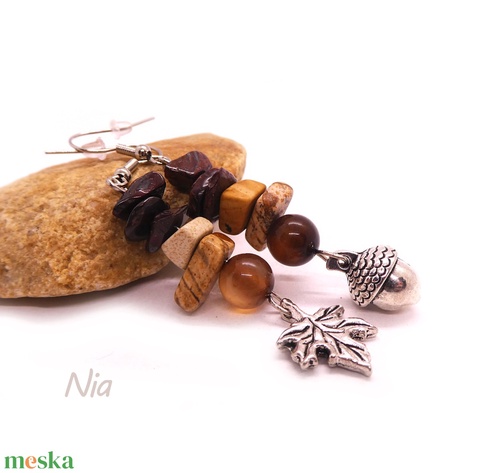 Itt van az ősz, itt van újra - ásványfülbevaló makk és juharlevél medállal