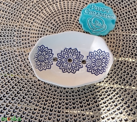Mandala mintás kerámia szappantartó, fehér-kék