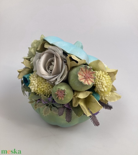 - Anyaga: tűzőhab, növényi részek, selyemvirág, kellékek, kerámia