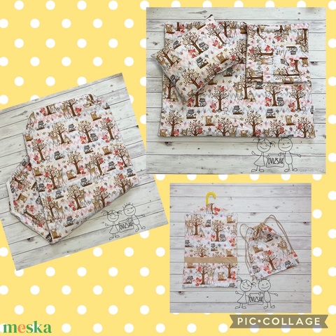 Erdei állatos ovis vagy kisgyermek ágynemű szett + ovizsák tornazsák szett + derékalj