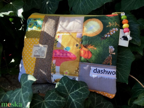 MIXED UP IN GREEN/YELLOW. No. 2. - - - Patchwork gombás-tökös-földimalacos sminkcucc-tartó/pipere