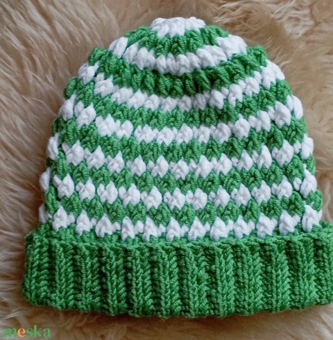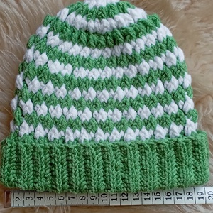 Zöld-fehér meleg sapka 2-3 éves gyermeknek