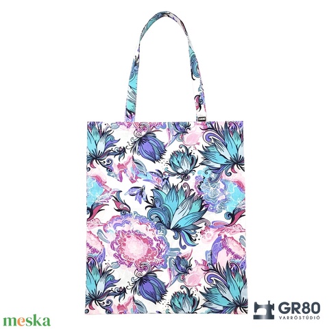 Vászontáska türkiz virág mintával, bevásárlótáska