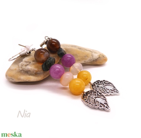 Elsárgult levél - őszi ásványfülbevaló falevél medálokkal