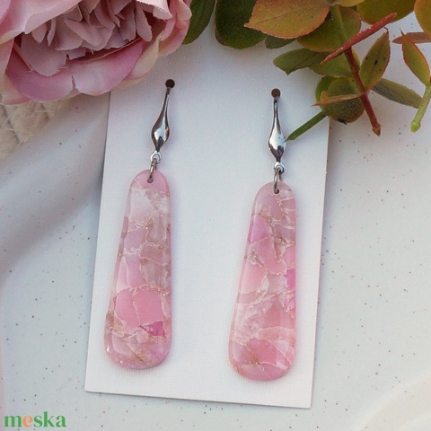 Ásvány hatású rózsaszín fülbevaló