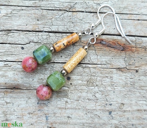 Akció! Változás - jáspis, rodonit, szerpentin ásvány fülbevaló