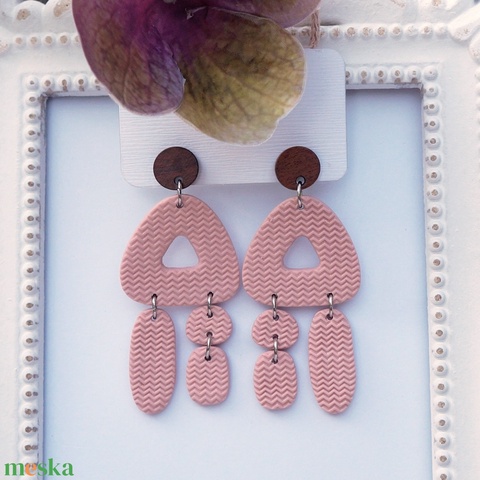 Púder rózsaszín texturált fülbevaló