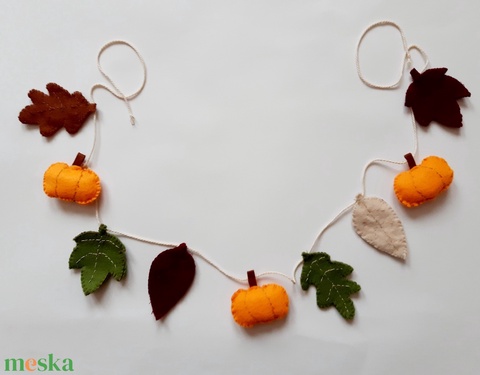 Levélfűzér - őszi dísz, dekoráció, függődísz, filcfűzér, ablakdekoráció, ajtódísz