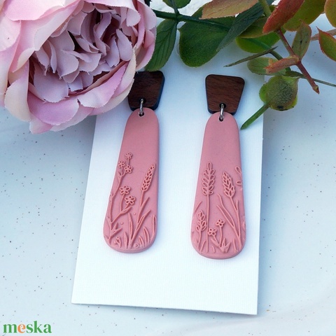 Virágos rét, texturált fa/nemesacél fülbevaló