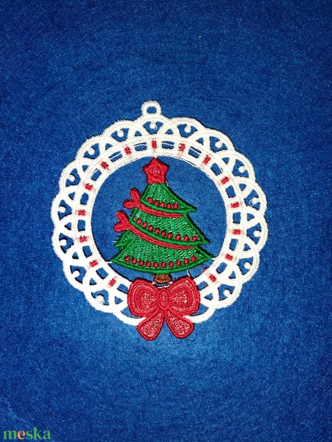 Csipke dísz keretben, többféle, felakasztható - Színes fenyő