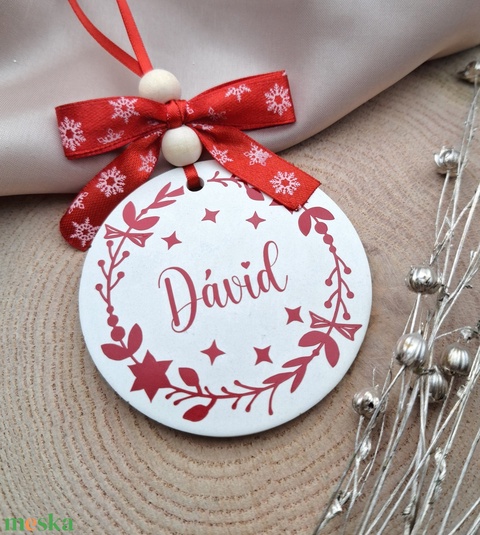 Karácsonyfadísz, egyedi, névre szóló felirattal - Raysin (piros)