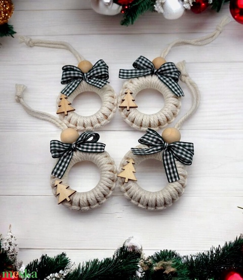 - Anyaga: pamut fonal, fa karika, fa díszítőelemek