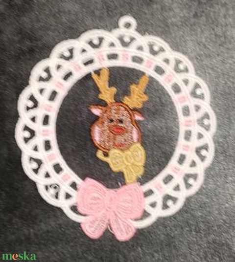 Csipke dísz keretben, többféle, felakasztható - Színes rénszarvas