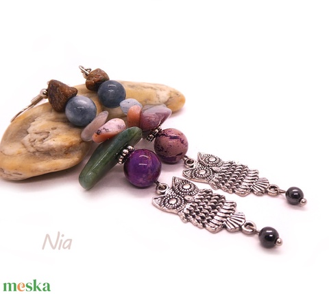 Szerelmes bagolypár - ásványfülbevaló bagoly medálokkal