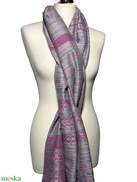 Kézzel Szőtt Rózsaszín - Zöld átmenetes Merinó Gyapjú és Selyem Kendő