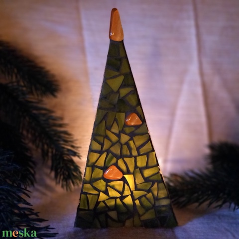 Karácsonyfa - üvegmozaik mécsestartó