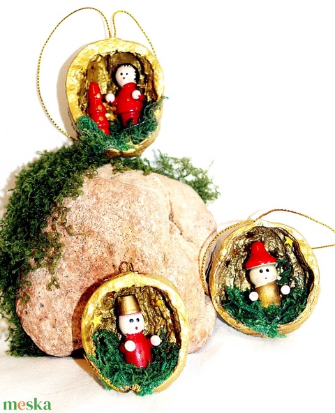 3 db Dióhéj, karácsonyfadísz (3 db egy csomag)