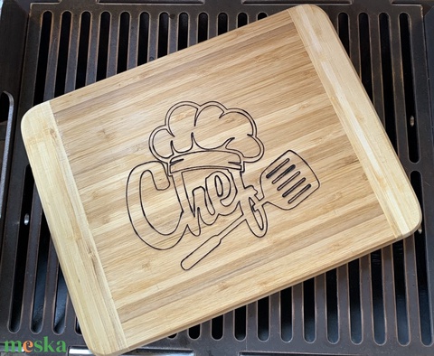 Egyedi gravírozott bambusz vágódeszka fakanállal