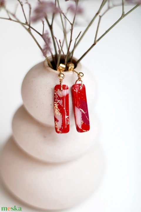 piros márványmintás lógó fülbevaló, márványos fülbevaló