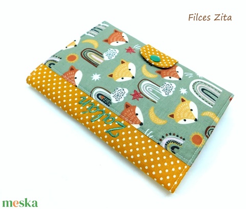 Rókás egészségügyi kiskönyv borító névhímzéssel - eü textil borító névvel