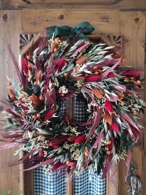 Őszi szárazvirág koszorú,ajtódísz