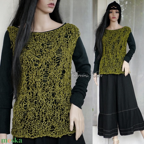 CHENILLE - bohó grunge kézzel kötött felső, mellény, zsenília pulóver