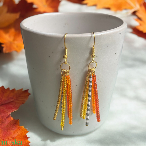 Őszi Harmónia Pálcika Ékszer Szett - lógós, pálcika fülbevalók az ősz színeivel, hozzá passzoló nyaklánccal