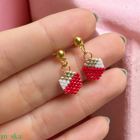 Aranycsillogás Hexagon Fülbevalók -hatszögletű, gyöngyfűzött, színes, lógós fülbevalók, aranyozott alap, elegáns, egyedi