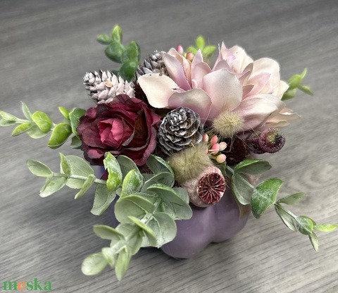 - Anyaga: kerámia kaspó, mű növény, selyemvirág, toboz, termések