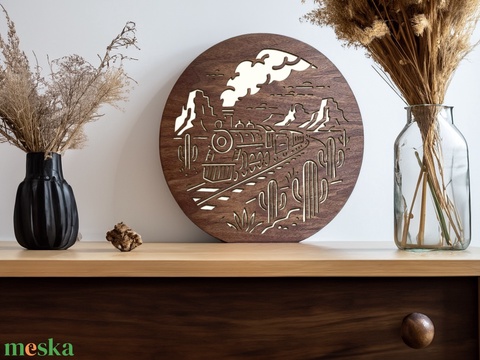 Vadnyugati mintájú lámpa lézervágott motívummal, fehér LED világítással és fényerőszabályzós kapcsolóval