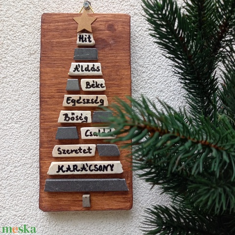 fa, lazúr, kavicsok, ragasztó, akasztó