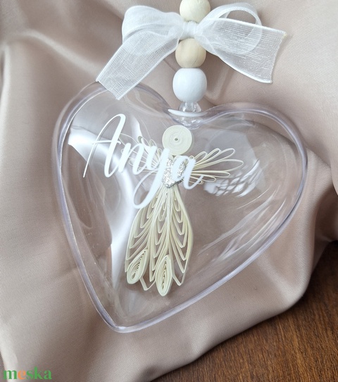 Egyedi, névre szóló, szív alakú Karácsonyfadísz - gyöngyfehér