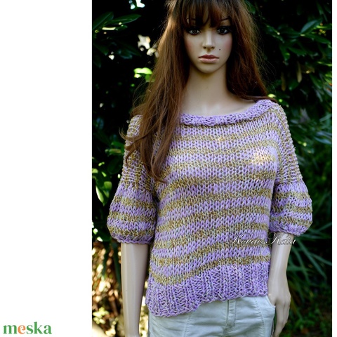 JAZZ / mézes - bohó grunge kézzel kötött chunky pamut-buklé pulóver