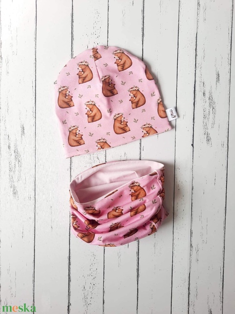 Mackóbocs és mamája sapka-sál szett (50-52)