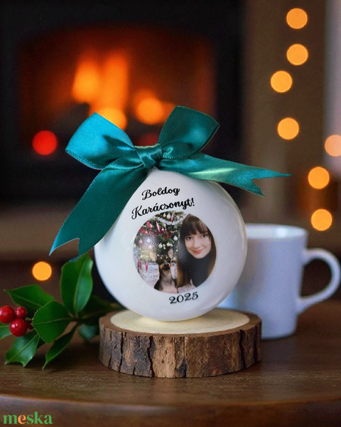 Fényképes üveggömb 8cm egyedi felirattal (801gomb)