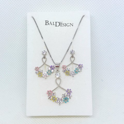 Elegáns, virágos ezüst ékszer szett ródium bevonattalEngedd szabadjára a nőies oldalad ezzel a csodálatos, színes virágos ezüst ékszer szettel! A finom, ródium bevonattal ellátott fülbevaló és medál apró, színes cirkónia kövekkel díszített színes virágokból áll, amelyek ragyogóan csillognak a fényben. A bedugós fülbevaló kényelmes viseletet biztosít, míg a medál időtlen eleganciát sugároz.Miért válaszd ezt az ékszert?
