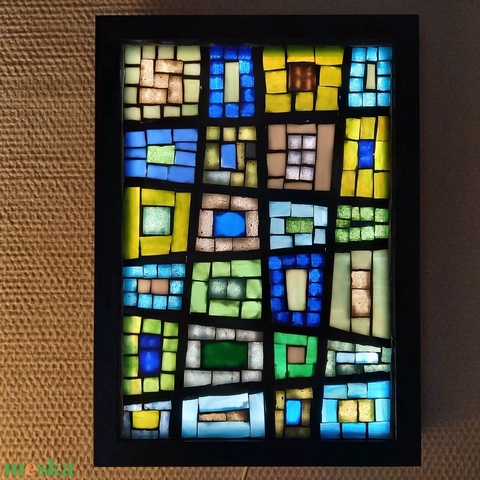 Absztrakt - üvegmozaik falikép világítással