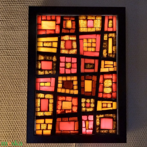 Absztrakt - üvegmozaik falikép világítással