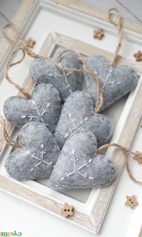 Bababarát hímzett karácsonyi filc szívek