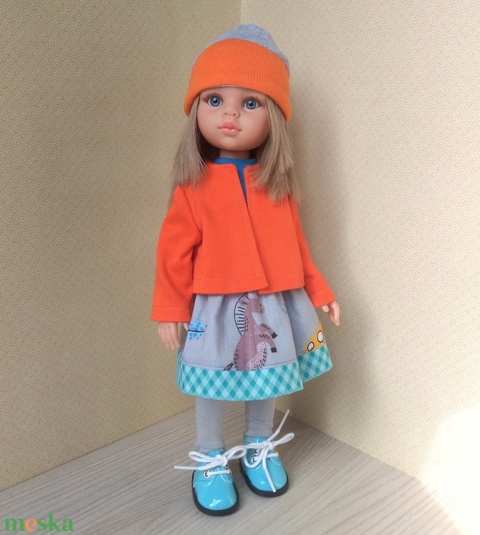 Narancs kabátos öltözék 32 cm-s Paola Reina babának